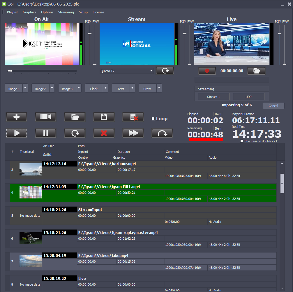 También, se pueden pautar streams RTMP, HLS, UDP, HTTP como eventos en vivo, incluyendo los videos de Youtube, directamente a la lista de reproducción.
