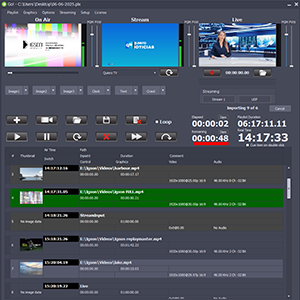 • Le permite insertar eventos en vivo a su playlist, así como grabar la señal en vivo en alta calidad en MP4. Para capturar las señales en vivo se requiere tarjeta Blackmagic Design que permite captura.Para capturar las señales en vivo se requiere una tarjeta Blackmagic Design que permite captura por SDI o HDMI. También soportamos captura por USB (por ejemplo, webcams) y por NDI.